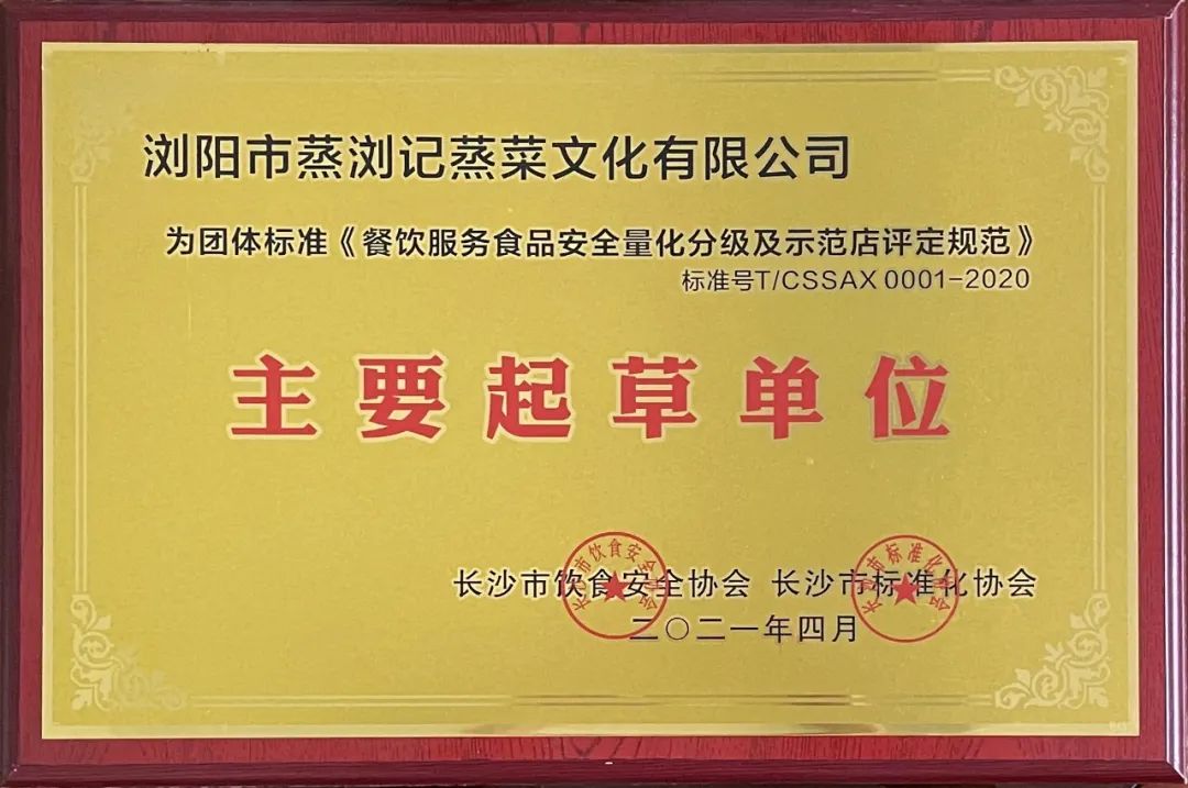 2020年底,湖南發(fā)布《餐飲服務(wù)食品安全量化分級及示范店評定規(guī)范》團體標(biāo)準(zhǔn)。蒸瀏記是這一團體標(biāo)準(zhǔn)的主要起草單位,得到了長沙市飲食安全協(xié)會的表彰。