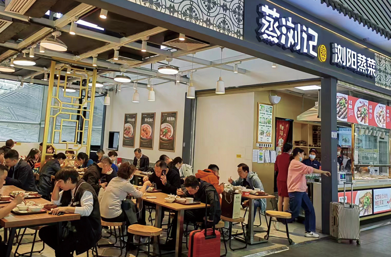 近兩年來,依托自身的品類特點和供應鏈優勢,蒸瀏記抓住疫情導致旺鋪空出率高的空檔期,主動出擊,快速布局機場、高鐵站和高速服務區等區域交通樞紐。其中,在長沙南站、廣州南站、深圳北站、珠海高鐵站均有多家門店。同時,新增了瀏粉·長沙米粉、聯四城·蘭州拉面等品類品牌,全方位滿足消費者需求。