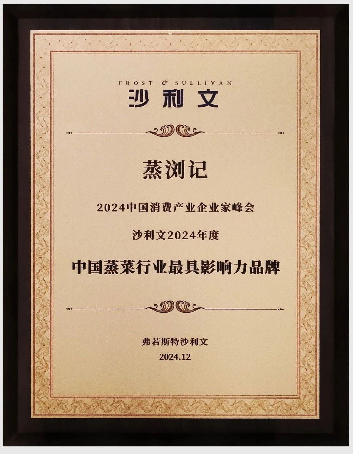 歷經(jīng)奮楫篤行的2024年,瀏陽蒸菜標(biāo)準(zhǔn)示范品牌蒸瀏記在歲末年終收獲了一份最沉甸甸的行業(yè)肯定——獲評(píng)“沙利文2024年度中國(guó)蒸菜行業(yè)最具影響力品牌”。